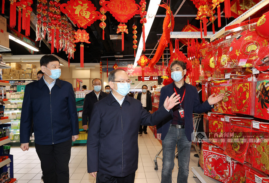 2月10日,自治区党委书记、自治区人大常委会主任鹿心社,走进华润万家南宁青秀店检查指导春节假期保障市场供应和物价稳定工作。记者 黄克摄