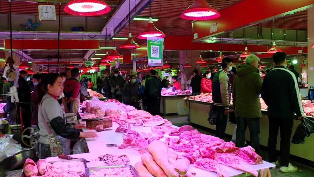 南宁市淡村综合农贸市场管理部副经理 肖继礼:平时卖有两百多头,现在有300多头猪这样。