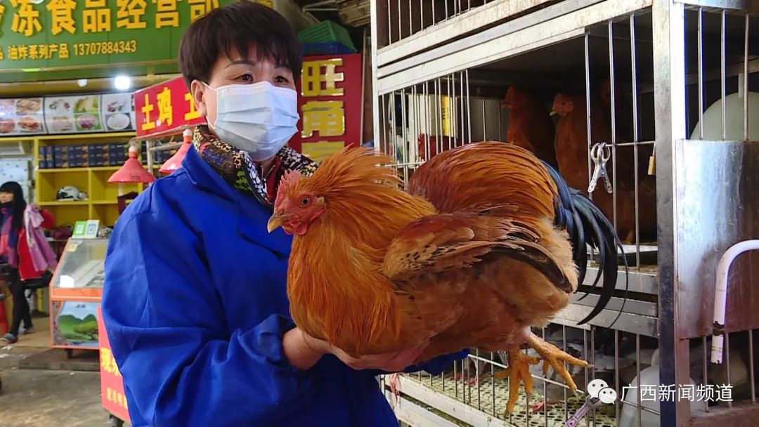 南宁市淡村农贸市场B栋03号铺铺主 罗碧霞:土鸡鸡冠没有那么红,看它的脚没有那么光滑的,比较脏的看起来干干的,没有什么水分的那种,你还要看它的毛,比较光滑,比较结实一点。杀出来的话它那个鸡肾是带点黑色的,又大又硬,要是你买便宜的鸡,养的时间不够,鸡肾很小的,又有白色。