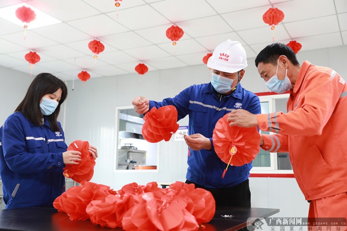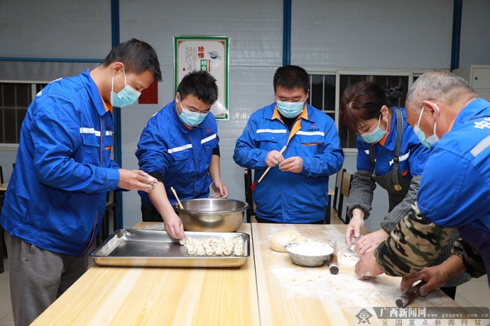大红的灯笼高高挂,吉祥的春联贴上门,笔者在贵南高铁广西段沿线各项目部走访时看到,在各参建单位的办公区和工人生活区,施工现场上除了紧张有序的施工气氛外,更洋溢着浓浓的年味。为保障节日期间留守一线建设者就地过年不将就,云桂铁路广西公司和各参建单位开展了施工人员留岗情况的摸底工作,通过保障基本生活物资和防疫物资供应、给予留岗加班补贴、落实好工资和休假等待遇保障,让所有坚守一线的建设者就地过年不将就。目前所有工资款项都已拨付到位,口罩、消毒液等防疫物资准备充足,现场施工安全有序可控。“今年过年留在工地干活挺好的,不仅为铁路建设做了贡献,收入相比平时也有了增长,家里人也很支持我,等后面疫情和生产任务都缓和,我再回家和家人团聚。”中铁十四局贵南高铁智能轨枕厂智能螺旋筋套管组装设备操作手于博说。