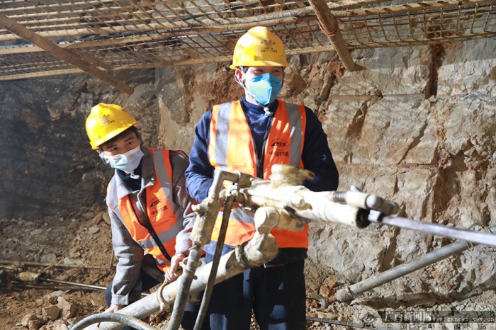 毛南族的莫顺严、莫海东父子也是坚守隧道施工一线的人员之一,尽管家在本地,他们还是放弃了休息和串门走亲戚的机会,莫海东告诉笔者,在高铁工地务工的这些年,他家的生活有了很大改善。去年,毛南族整族脱贫更让他们干劲十足,现在为让毛南族老乡们早日乘上高铁,也成了父子俩共同的心愿。“家里的亲戚朋友知道我们春节在高铁一线做工,都很支持我们,我们能够为我们家乡的高铁出一份力,也感到很开心”莫海东对笔者说。