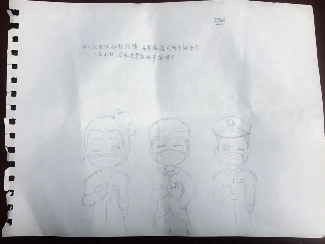 D2976次出站后,秦梦婷打开纸张,发现里面是一幅画,是两名铁路工作人员和一名医生的画像。