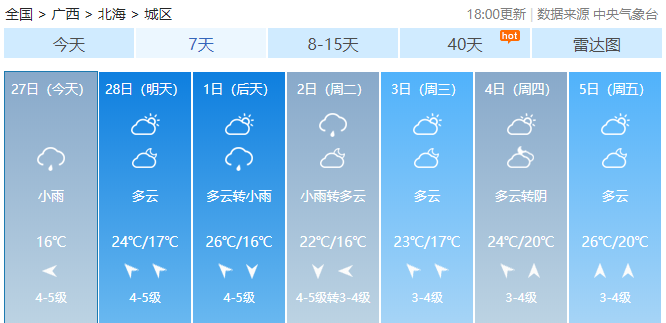 各地未来一周天气预报