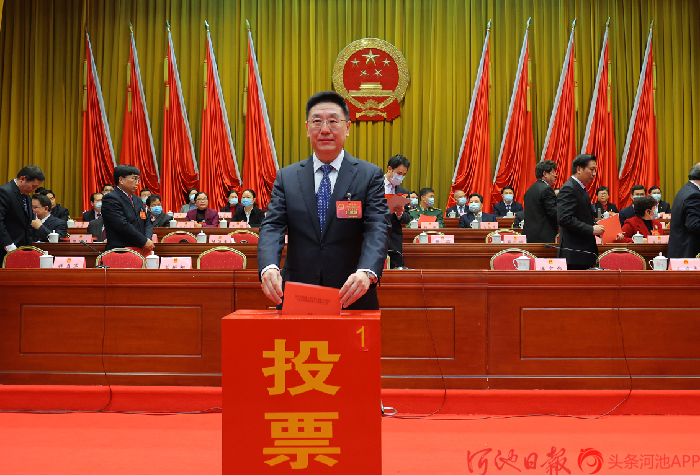 3月3日下午,河池市第四届人民代表大会第六次会议举行第三次全体会议,补选市人大常委会主任、市人民政府市长、市监委主任和市人大常委会委员。