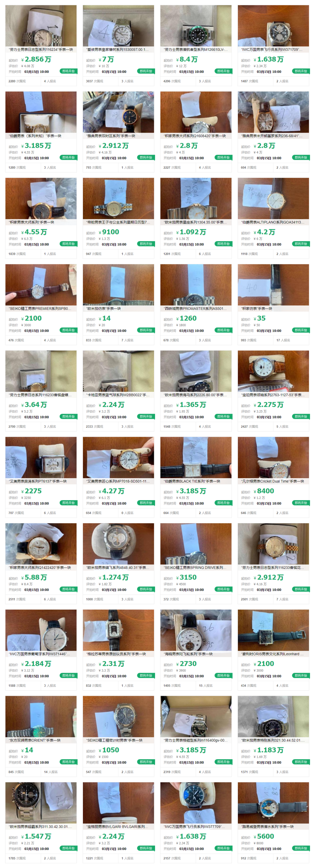 起拍价最高8.4万元!南宁中院将拍卖41块手表