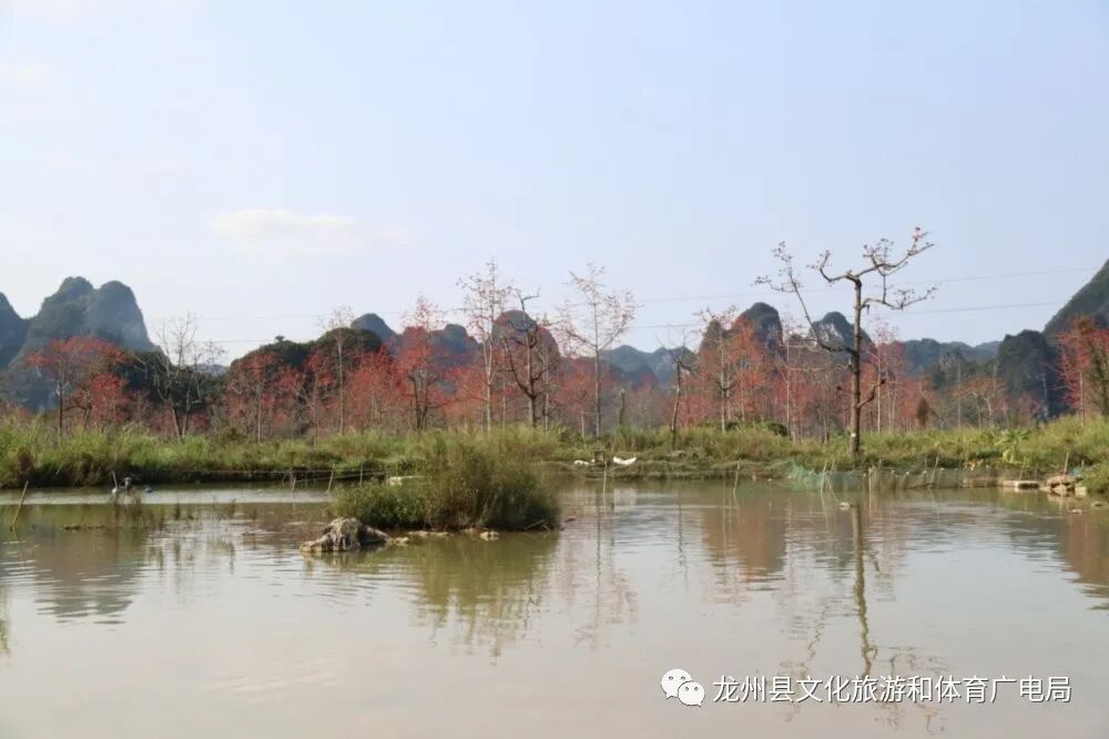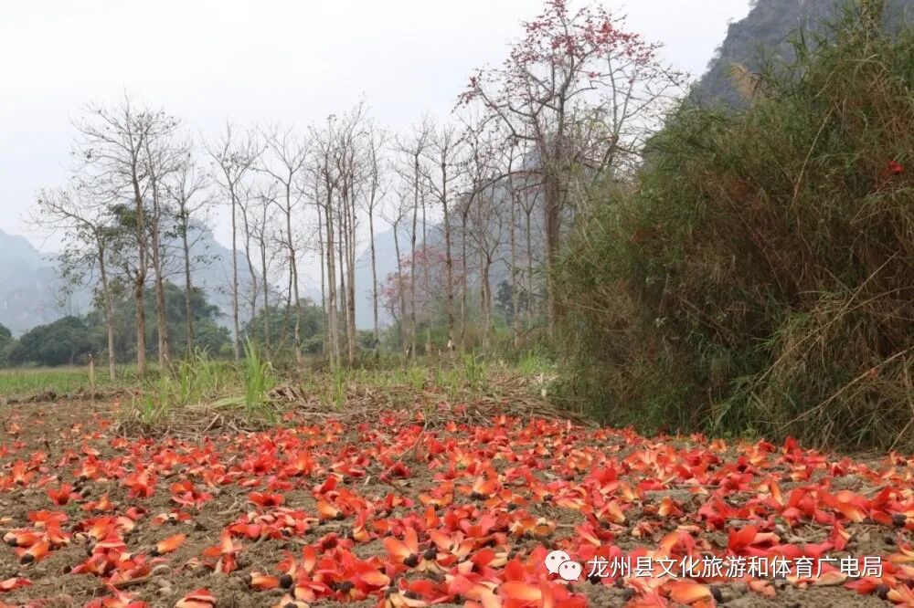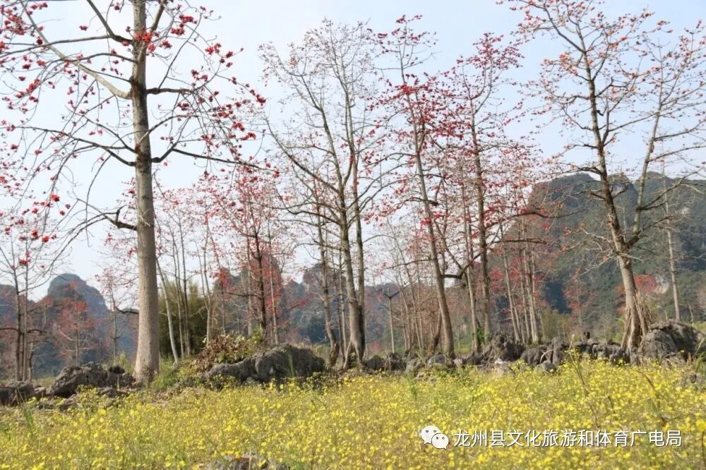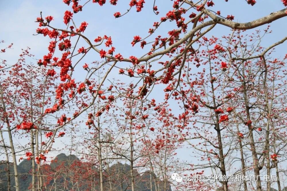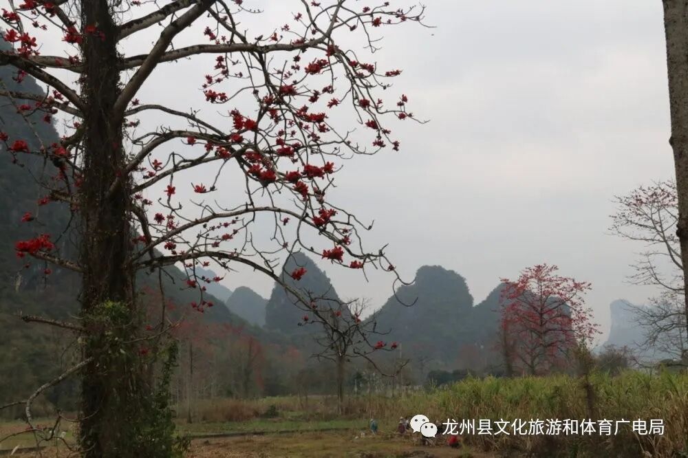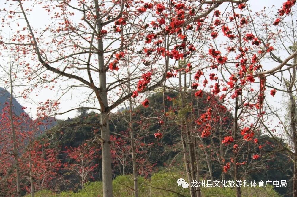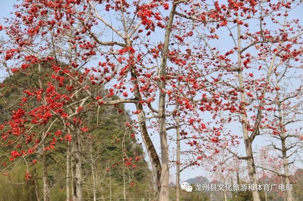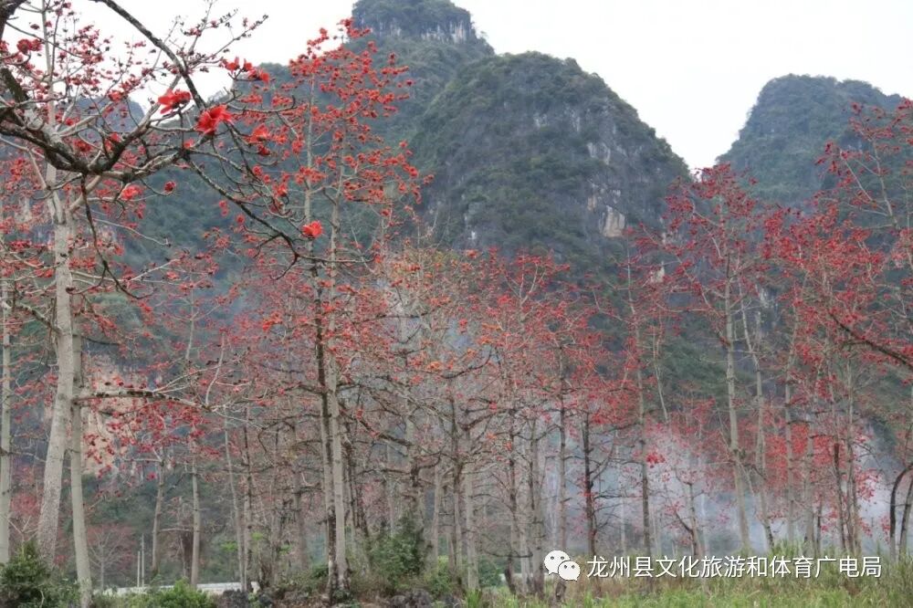 赏木棉,最好就到龙州逐卜乡逐卜村的木棉谷吧,这里可是德天至花山一级旅游大道的最为著名的网红地。上百棵木棉集中在峡谷中,繁花竞放,甚是壮观。
