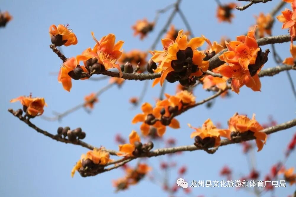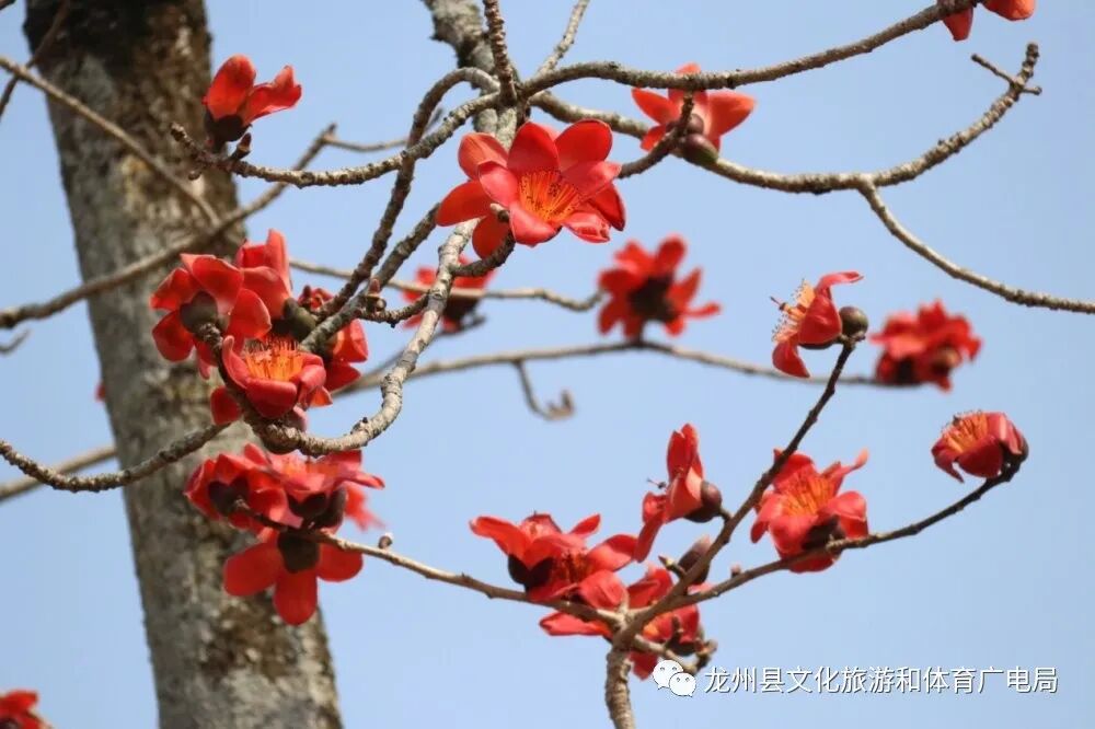 “奇花烂漫半天中,天上云霞相映红。自是月宫丹桂种,嫦娥移植海门东。”明代诗人王邦畿见了木棉盛开的奇观异景,曾作诗来记录下这美丽景色。