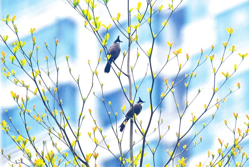雨水滋润万物,枝头发新芽。南宁晚报记者宋延康摄