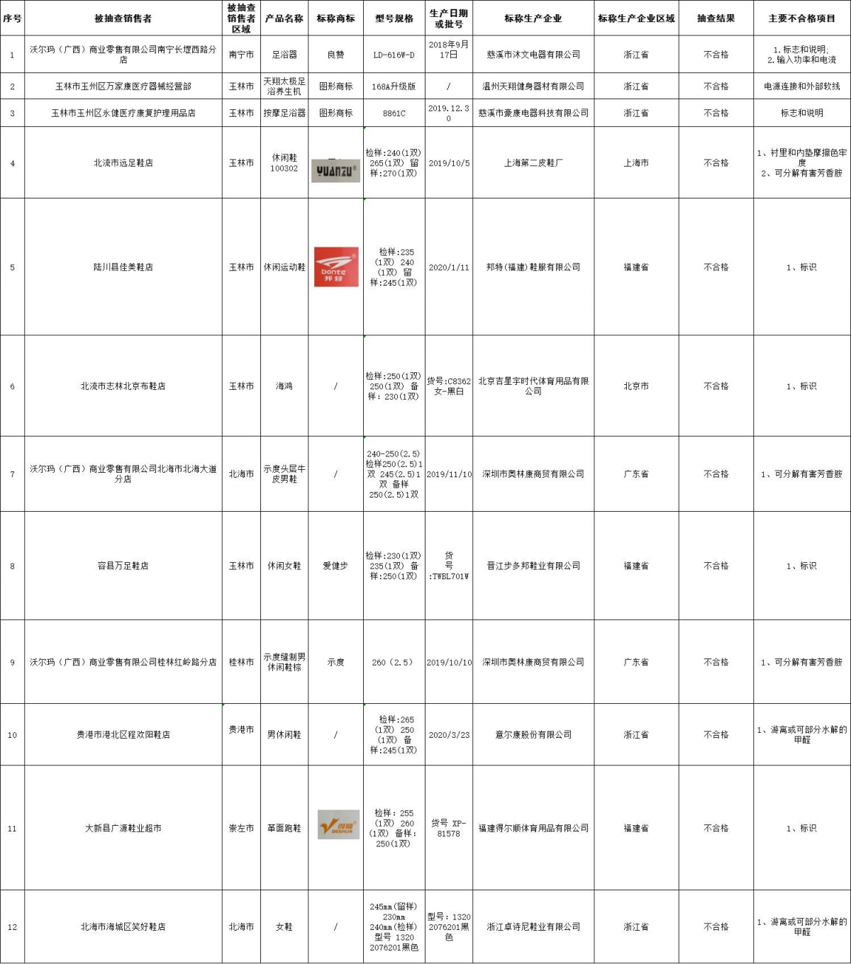 据了解,2020年广西市场监管部门共抽查44家老年人用品销售者的64批次产品,不合格产品12批次,不合格发现率为18.8%。不合格项目涉及标志和说明、输入功率和电流、电源连接和外部软线、衬里和内垫摩擦色牢度、可分解有害芳香胺、游离或可部分水解的甲醛、标识。
