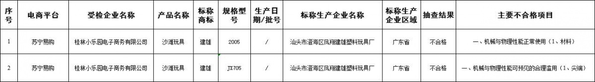 2020年流通领域(电子商务) 儿童玩具不合格产品批次名单