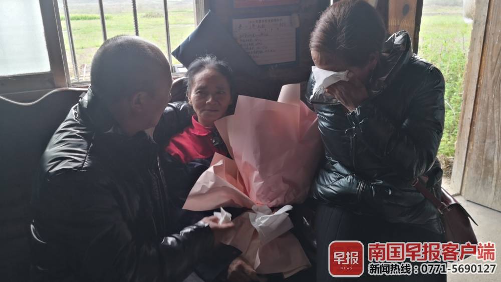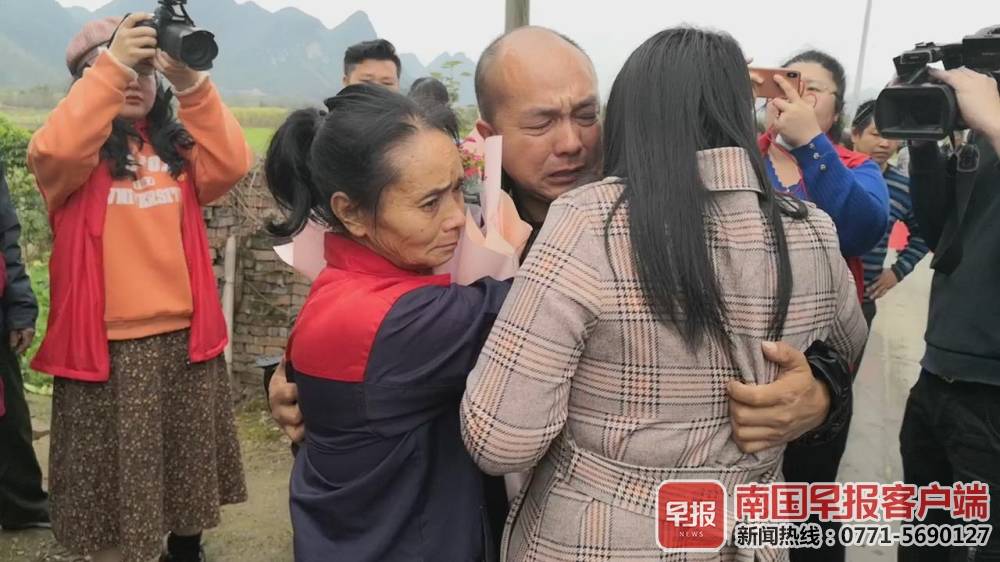 3月6日下午,李金贵驱车从贵州来到广西柳城六塘镇三界村松柏屯,与母亲、妹妹相见时泣不成声,围观的村民无不为之动容。