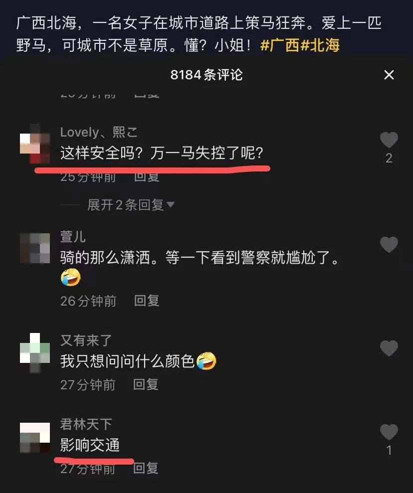 3月11日,网传一女子在广西北海的城市道路上策马奔腾的短视频引发网民热议。