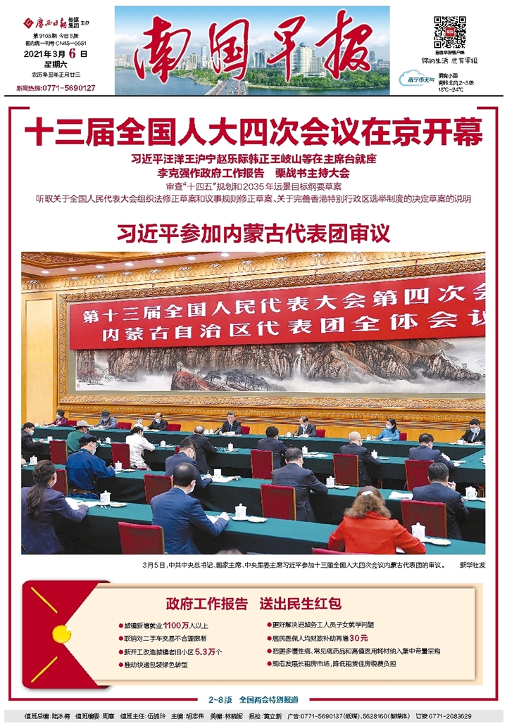 广西日报社旗下广西新闻网、都市报《南国早报》《南国今报》开设2021年全国两会专题和特别报道,及时集纳全国两会精彩报道。