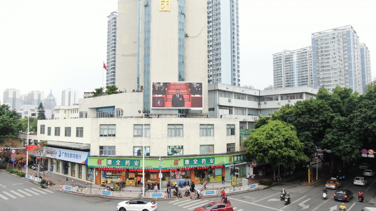 广西日报传媒集团户外大屏传播习近平总书记两会讲话精神。