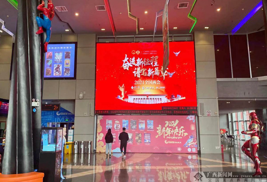 广西日报—广西云两会视频产品在南宁民族影城LED大屏播放。南宁民族影城供图