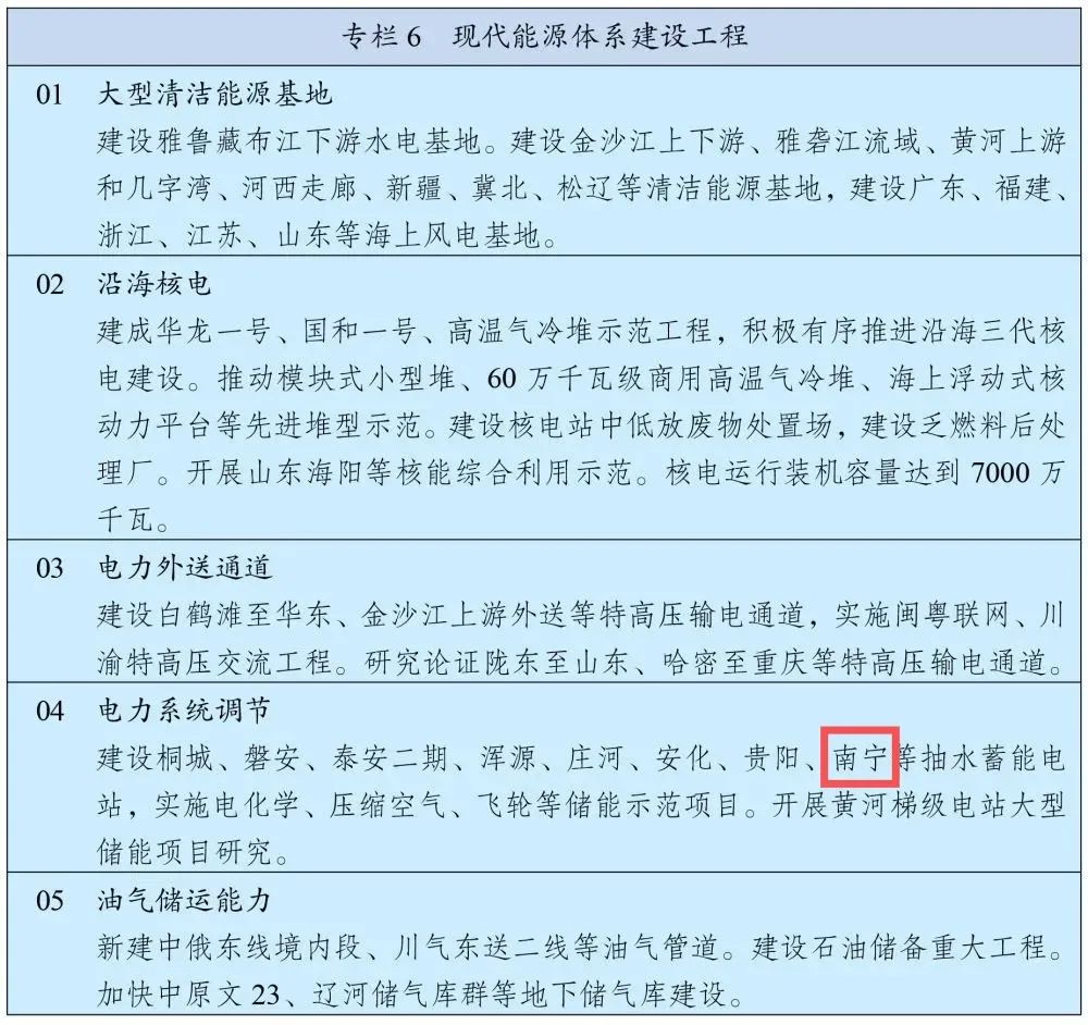 现代能源体系建设工程 ·有序发展海上风电,加快西南水电基地建设,安全稳妥推动沿海核电建设。