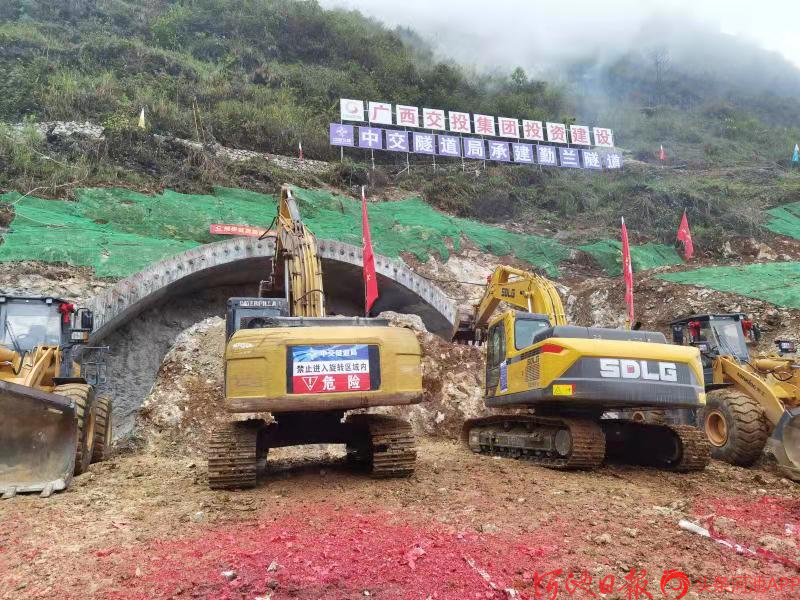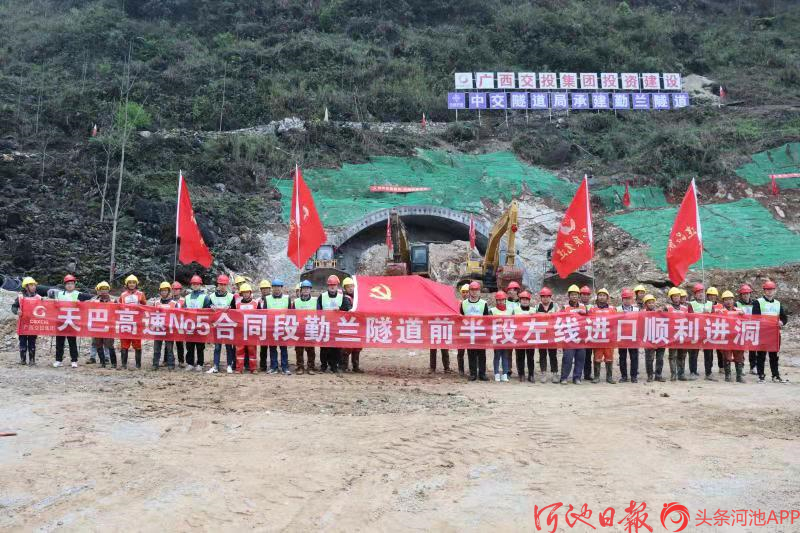 天巴高速最长隧道群——勤兰隧道顺利进洞 3月11日上午,伴随着鞭炮和机械轰鸣声,天峨至巴马高速公路(以下简称“天巴高速”)第5合同段勤兰隧道群由两端向中间同时开挖进洞,是天巴高速5标首座进洞的隧道。该项目由广西交通投资集团投资,中交隧道工程局承建,是天巴高速重要组成路段。此次隧道顺利进洞,标志着项目隧道建设全面拉开序幕。