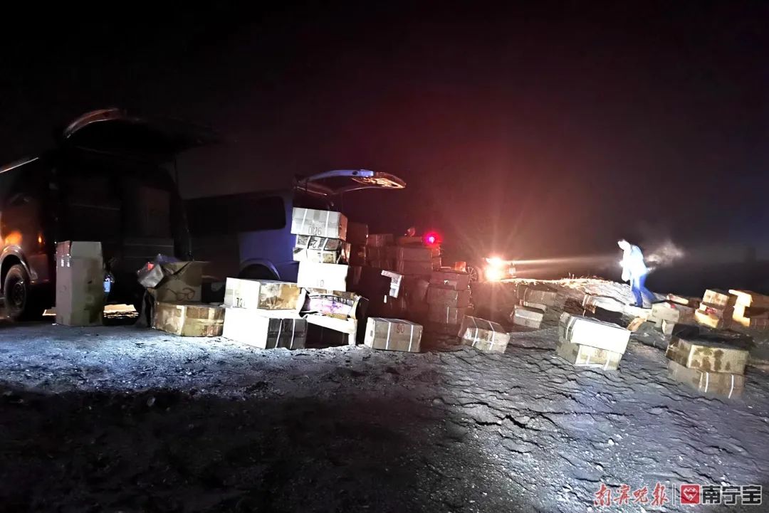 深夜码头边上11辆面包车一字排开 还有大量纸箱…