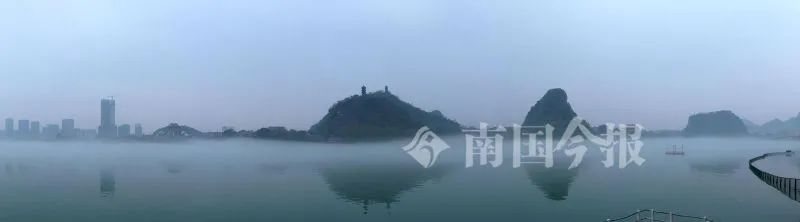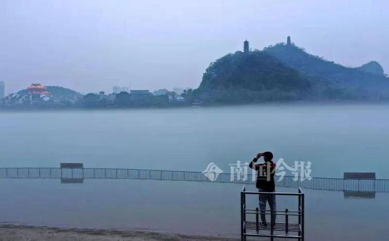 沿柳江而居的柳州人,3月15日早上出门时发现,柳江河被一层层的白雾笼罩着,灰蒙蒙的雾中露出一丛丛的绿树,此时的柳江像中国山水画一样仙气飘飘。