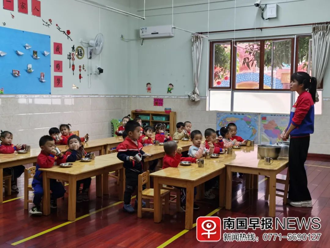 ▲孩子们正在吃午点。