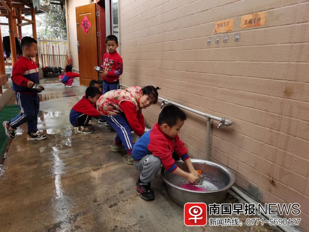 ▲孩子们吃完午点会自己洗碗。
