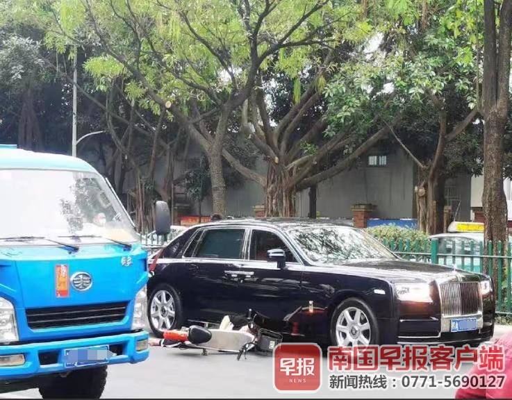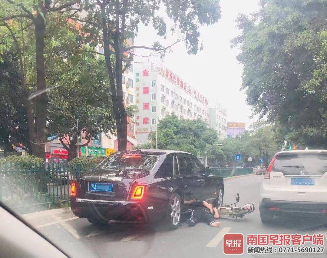 南宁一男子骑电车穿行机动车道,与劳斯莱斯刮碰!