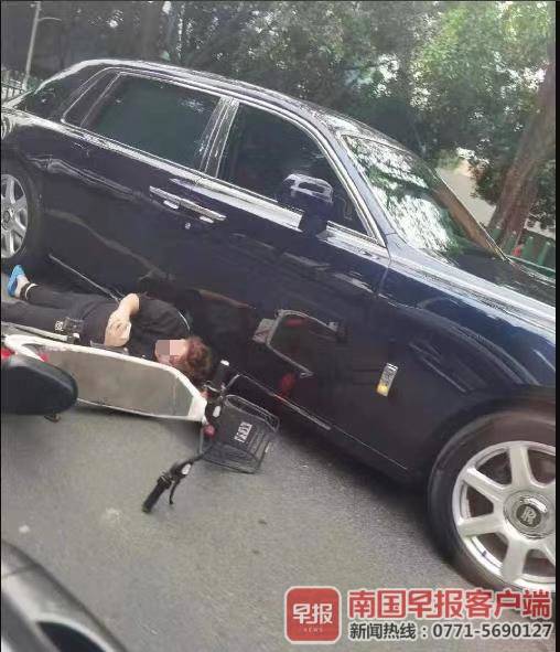 什么情况?南宁一男子骑共享电动自行车穿行机动车道,与劳斯莱斯刮碰!
