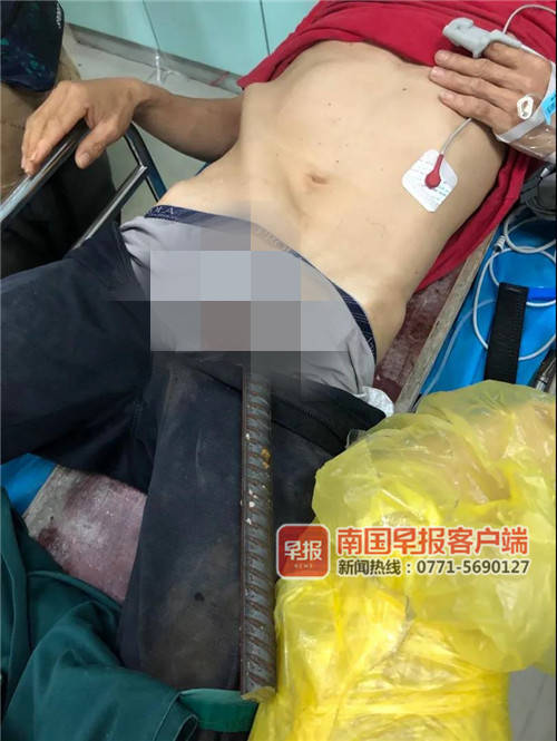 看着都疼!北海一工人被钢筋刺穿下体,钢筋长约90厘米