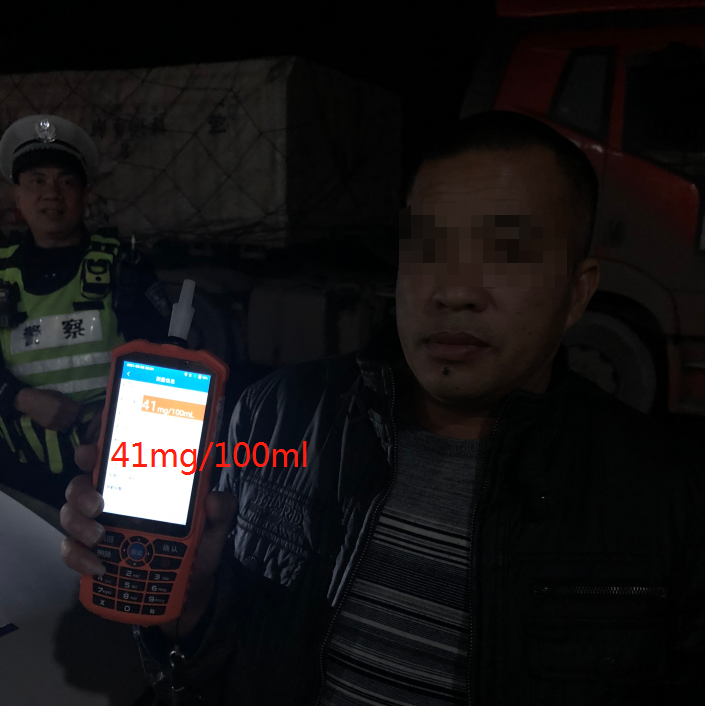 几秒后,快速排查仪发出酒驾警报,民警立即要求驾驶员下车,出示驾驶证件,配合进行酒精吹气检测。