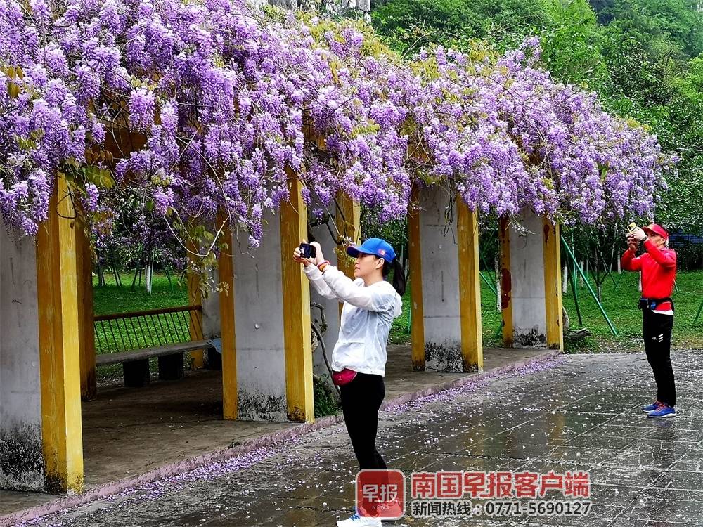 ▲在桂林园博园里,游客留下紫藤花开记忆。