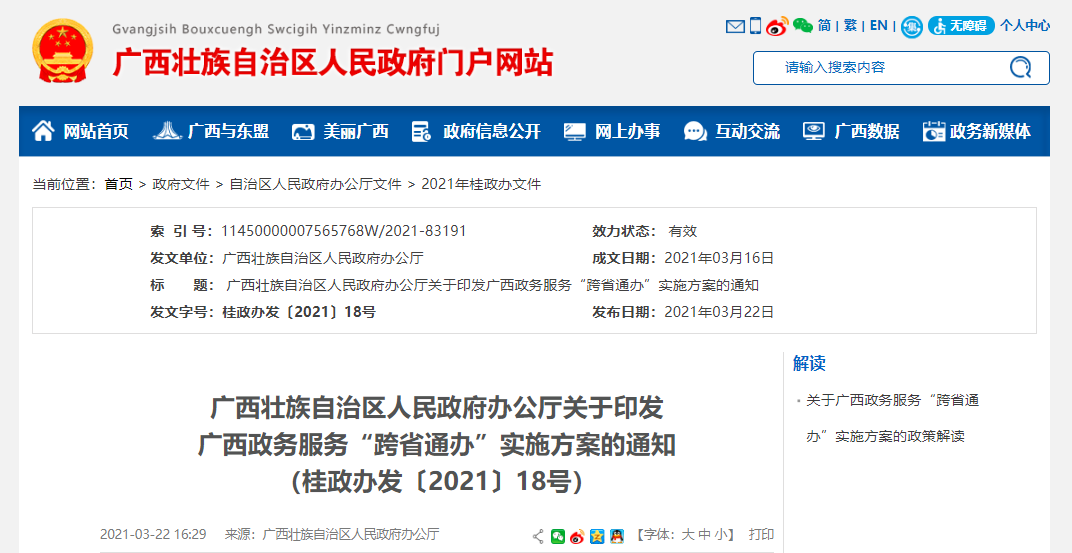 办事少跑腿!广西出台政务服务“跨省通办”实施方案