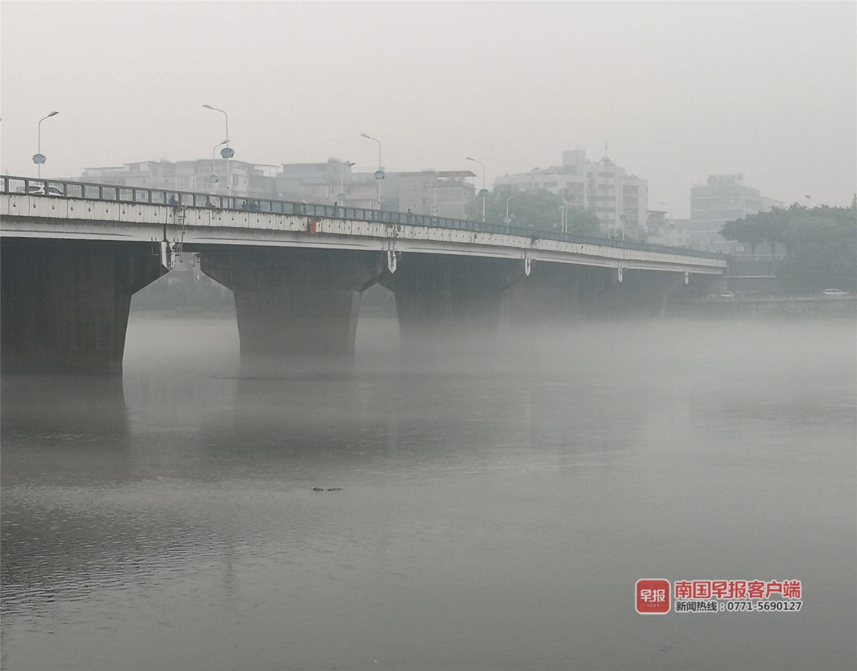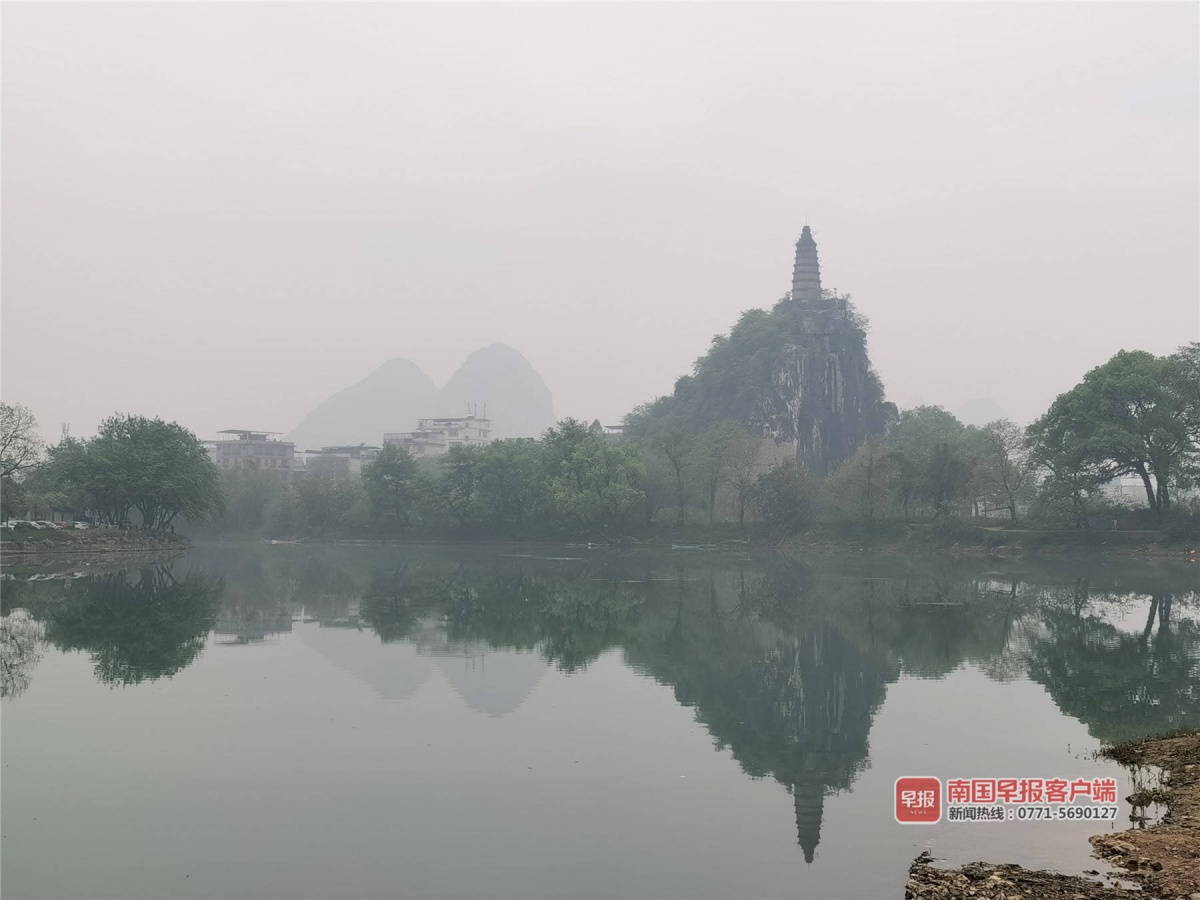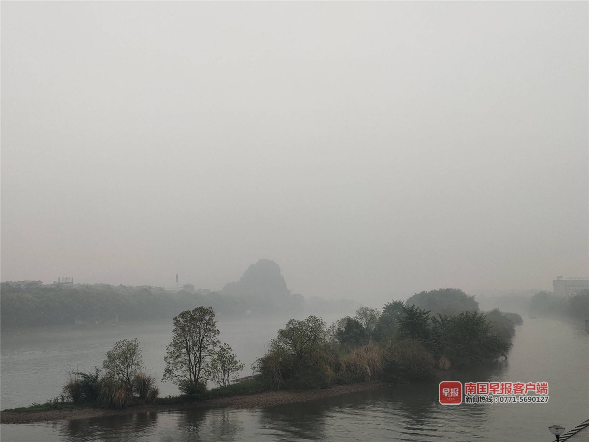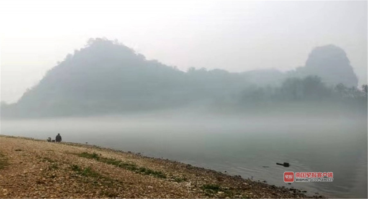 ▲虞山桥附近漓江江面朦胧景色。南国早报客户端记者唐晓燕摄
