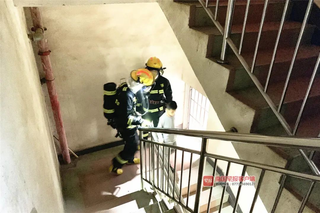 消防救援人员派出一支6人搜救组,对楼内人员进行搜救疏散,以防发生烟雾窒息事故。