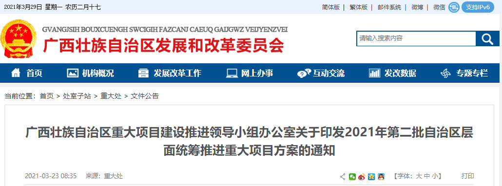 为充分发挥重大项目对投资和经济增长的强劲拉动作用,根据自治区党委、自治区人民政府对重大项目建设的工作部署,现印发2021年第二批自治区层面统筹推进重大项目方案。