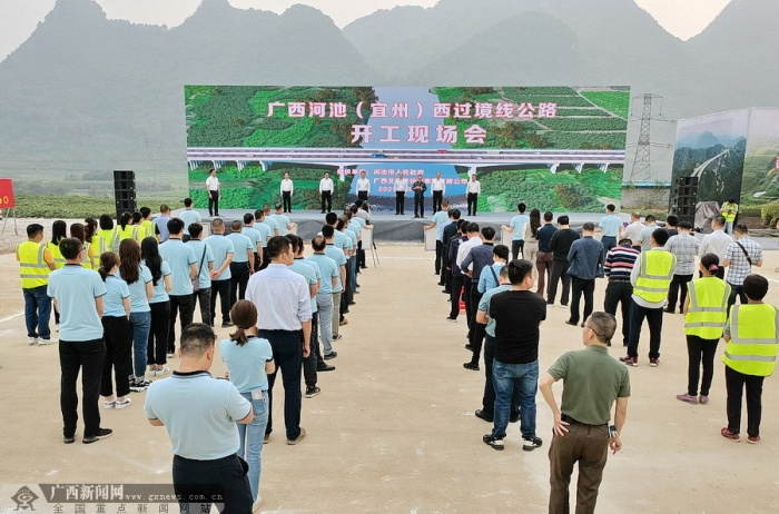 广西新闻网河池3月30日讯(记者 覃铮)3月30日上午,广西河池至贵州荔波高速公路、河池(宜州)西过境线公路建设项目同时举行开工仪式。至此,加上目前在建的贺州至巴马(河池段)、南丹至天峨下老、天峨(黔桂界)至北海高速公路(河池段)等7条(段),该市在建的高速公路达到9条(段),总里程约618公里,投资规模达1130亿元。这些高速公路项目的开建,将对河池加快西部陆海新通道节点城市建设,特别是对全市经济社会高质量发展、推动乡村振兴和脱贫攻坚具有重要意义。