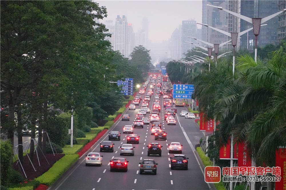 ▲5月5日傍晚6时,南宁市民族大道返程车辆逐渐增多,但未出现明显拥堵。南国早报客户端记者 邹财麟摄