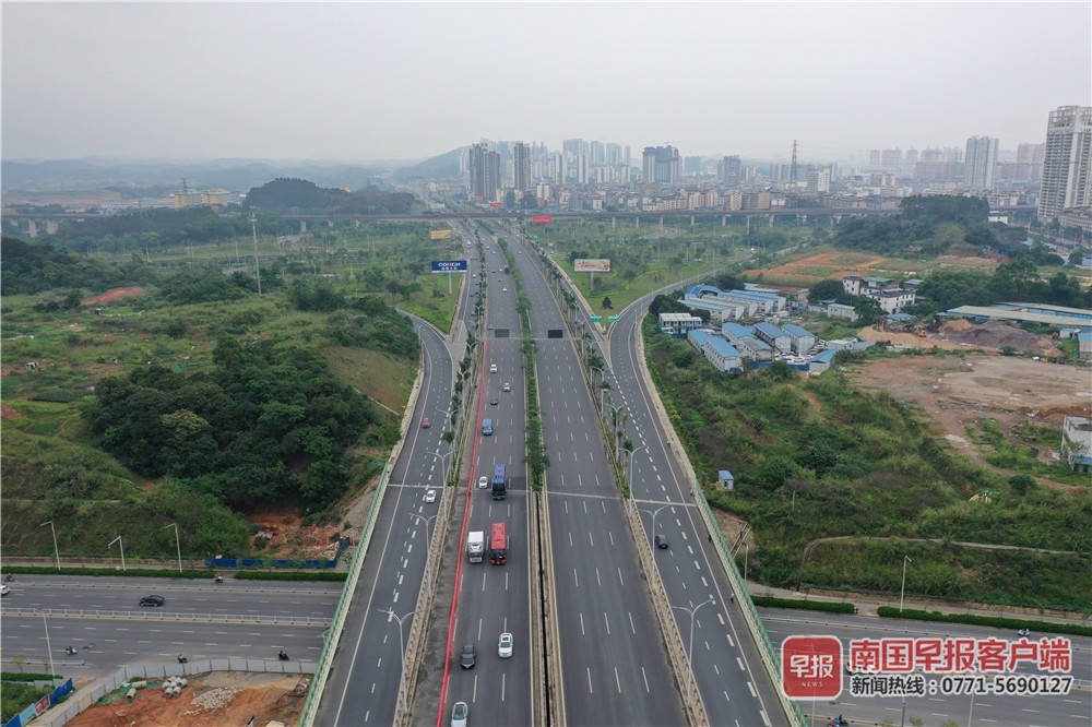 ▲5月5日下午5时,南宁市绕城高速车流稀疏,未出现拥堵。