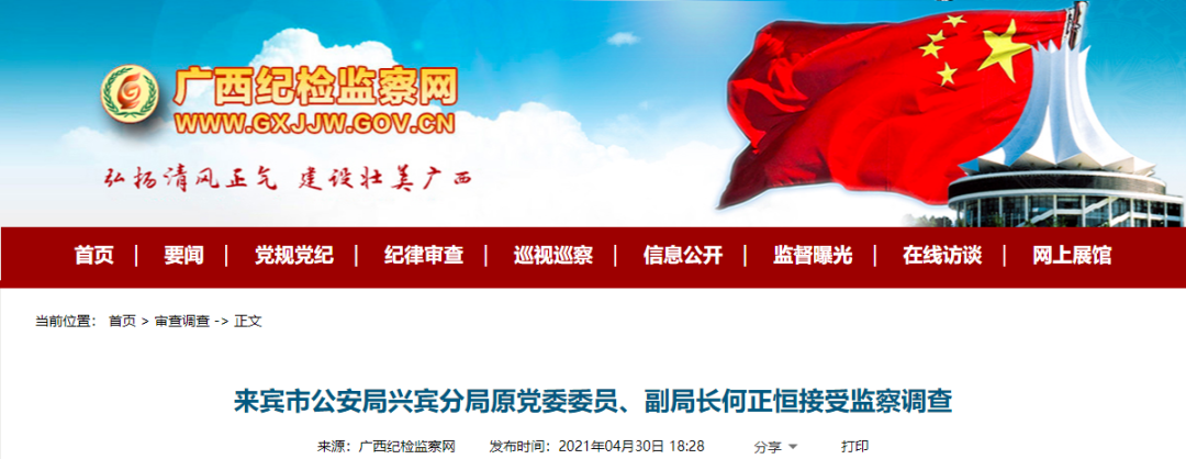 来宾市公安局兴宾分局原党委委员、副局长何正恒接受监察调查