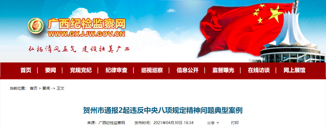 贺州市通报2起违反中央八项规定精神问题典型案例