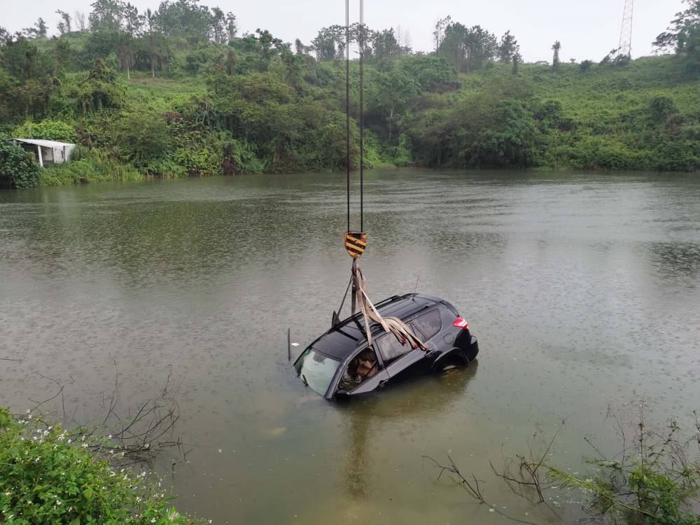 事发博白!女子驾车不慎冲进鱼塘 热心村民合力施救