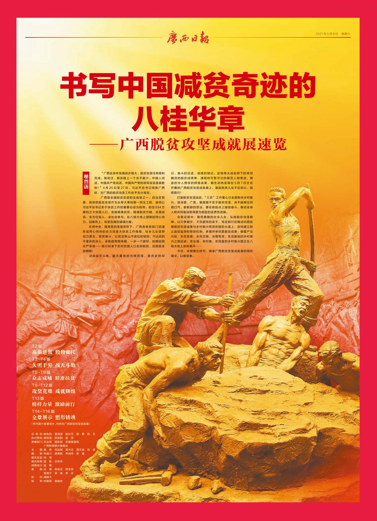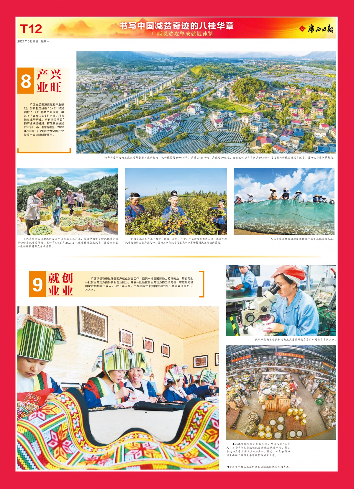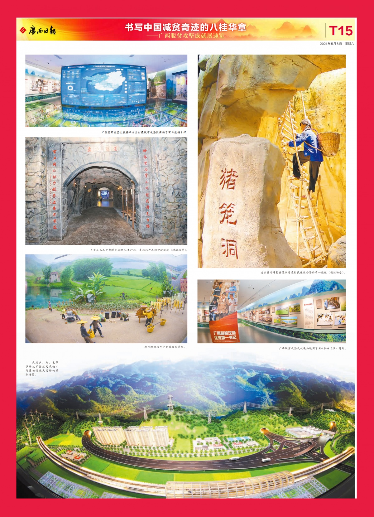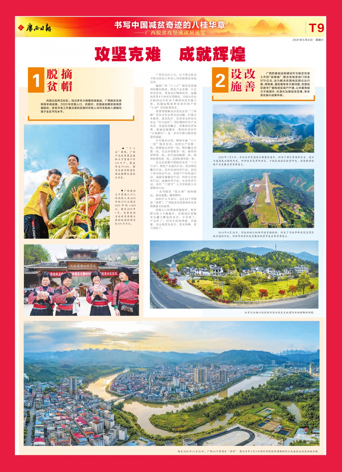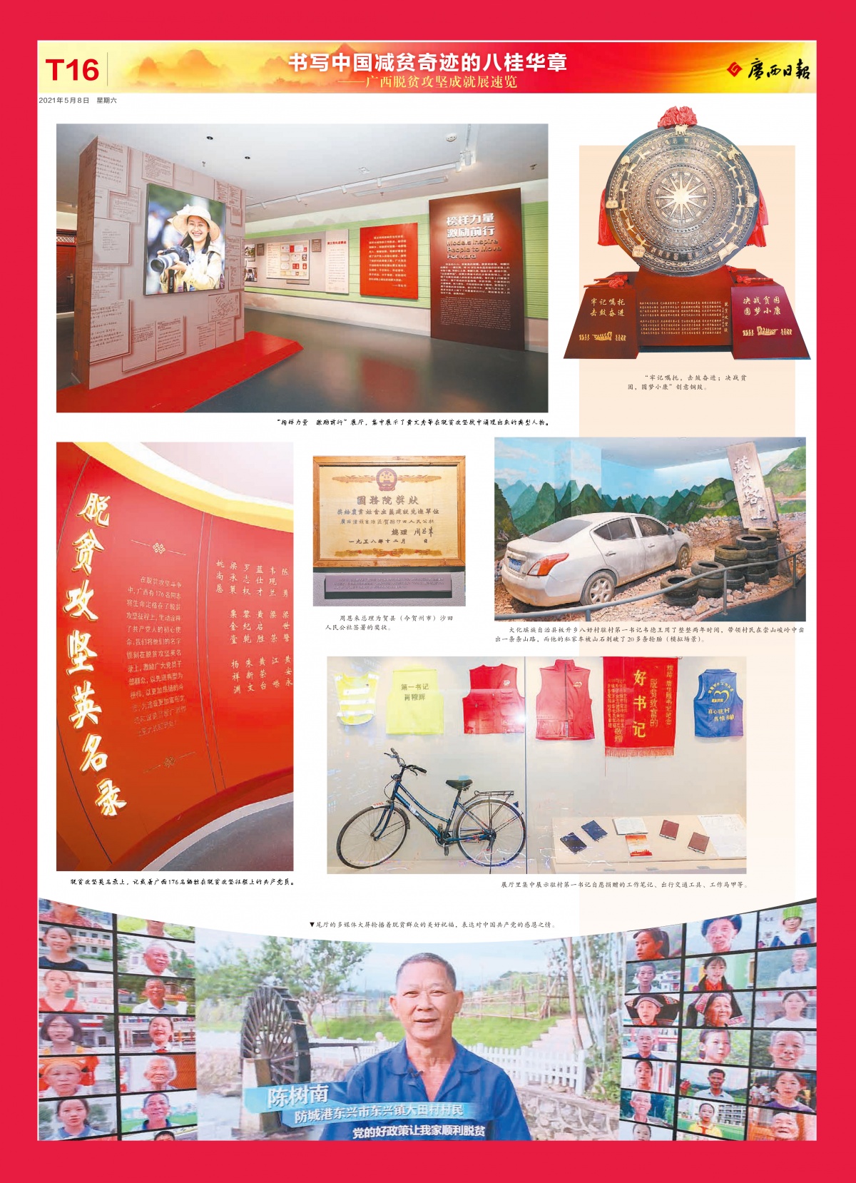 5月8日,广西日报重磅推出《书写中国减贫奇迹的八桂华章——广西脱贫攻坚成就展速览》,用16个特刊版面辑录广西脱贫攻坚成就展的精彩图文。