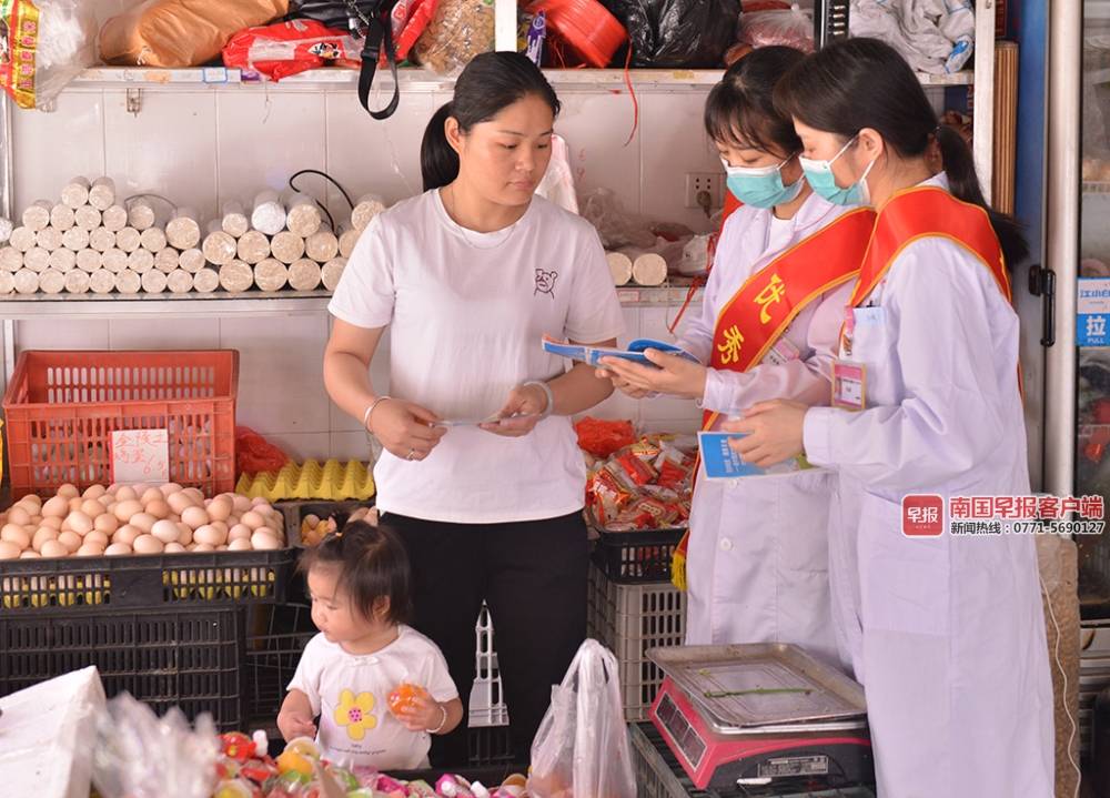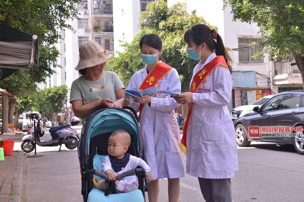 ▲5月8日,自治区妇幼保健院的医务人员走进社区开展地贫科普宣传活动。