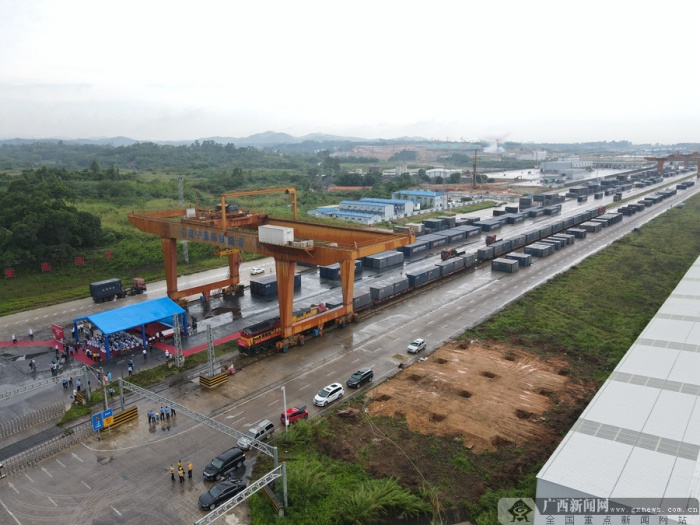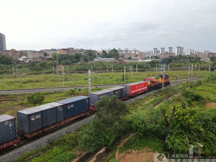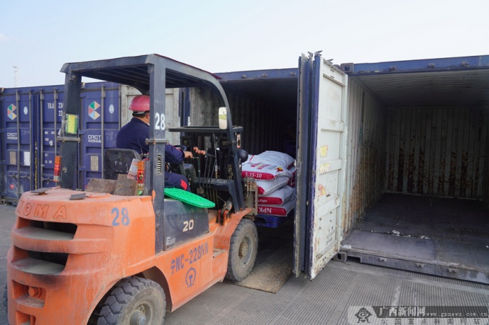 广西新闻网南宁5月13日讯(记者 蓝于涵 通讯员 宋斯丽 黄煜岱 陈智彬)5月13日上午11时30分,搭载着13车复合肥料的X9101次集装箱班列,从南宁国际铁路港出发,由国铁凭祥口岸物流中心出境,铁路运往越南转至公路运抵老挝。这是广西开行的首趟“中越老”农资产品跨境多式联运班列,开辟了途经东盟两国的“铁路—公路”长距离运输新路线,助力中国与东盟双边贸易发展和国内国际双循环的新发展格局建设。据了解,这趟“中越老”农资产品跨境多式联运班列总行程约1300公里,相较于以前海运时长至少半个月,铁公联运预计只需要4天左右就可以抵达老挝,全程运输时间节省了10天以上,批量运能也提高了百分之五十。