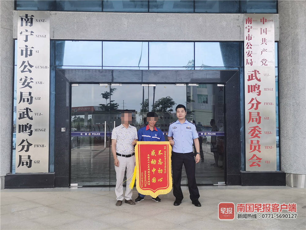 5月12日,杨女士家人来到武鸣公安分局,向民警送锦旗表示感谢。