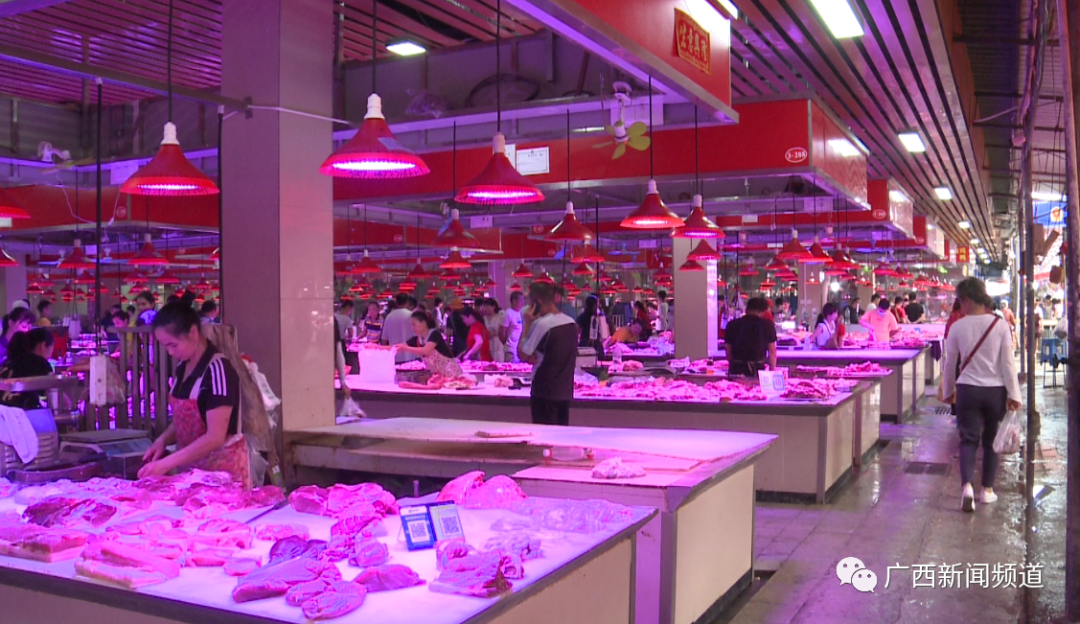 南宁市淡村农贸市场猪肉摊主 谢先生:降了一个多月了。不可能了,可能就跌到这个月底, 因为它那个饲料成本已经在那里摆着。