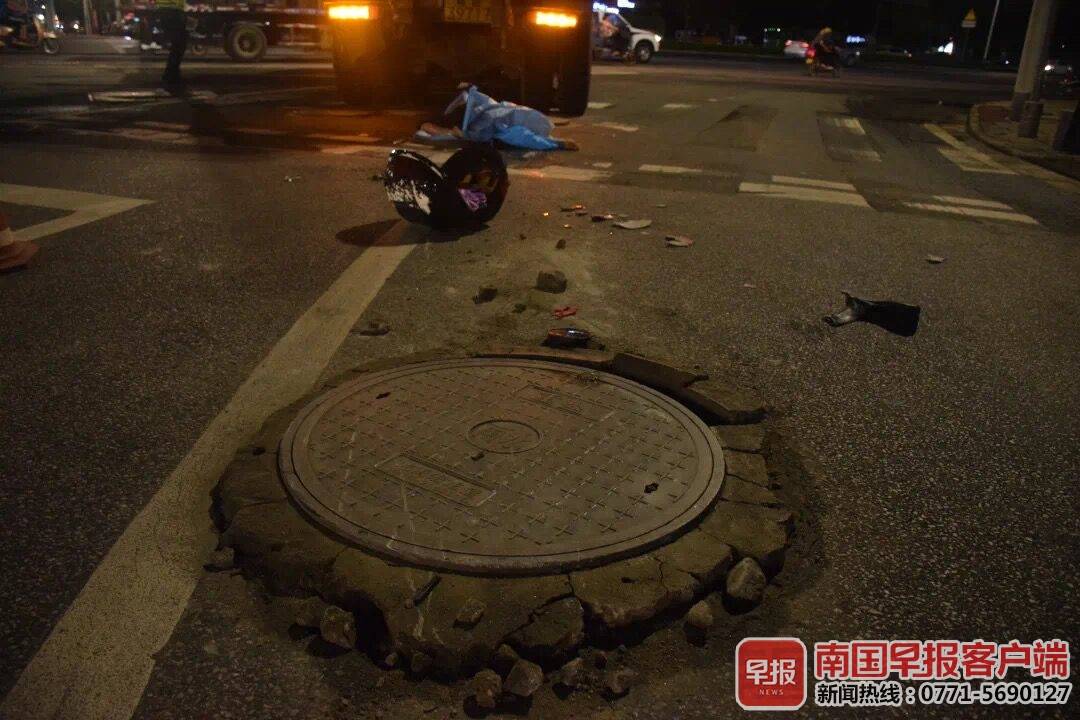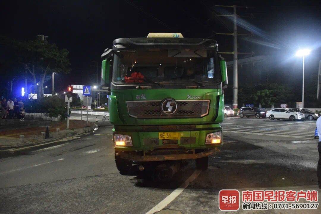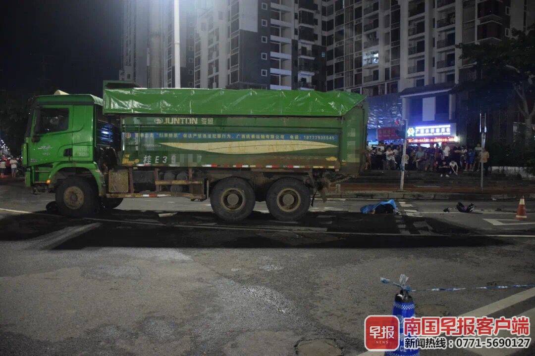 据介绍,13日晚7时14分许,北海市上海路新世纪大道路口,一辆电动车被卷入一辆大货车的车底,电动车驾驶人岳某不幸当场身亡,肇事的货车司机弃车逃离现场。