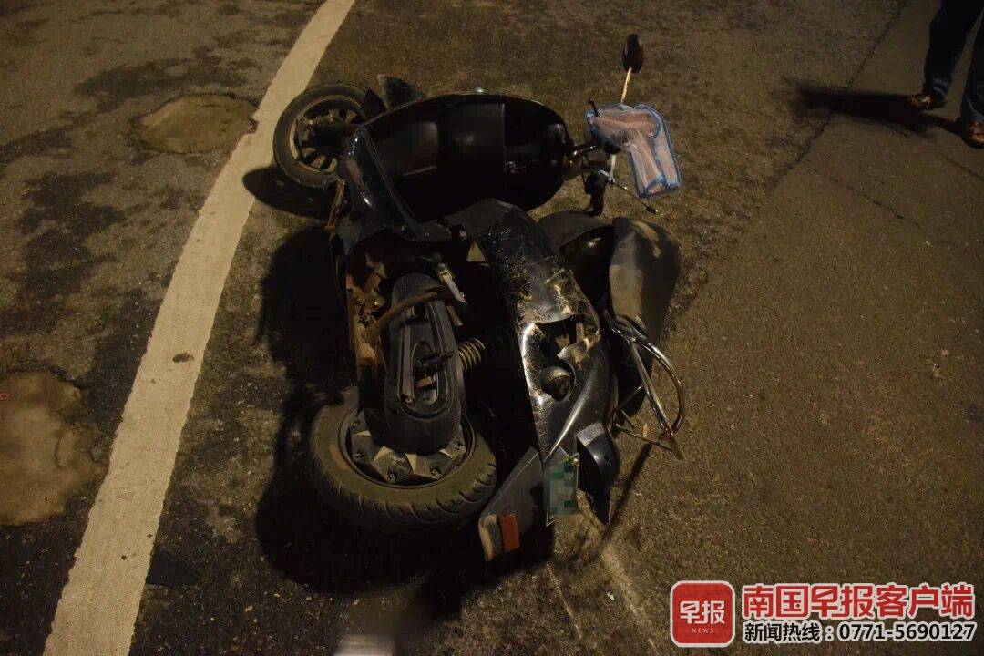 ▲事故现场散落一地的车辆零配件。北海交警部门供图
