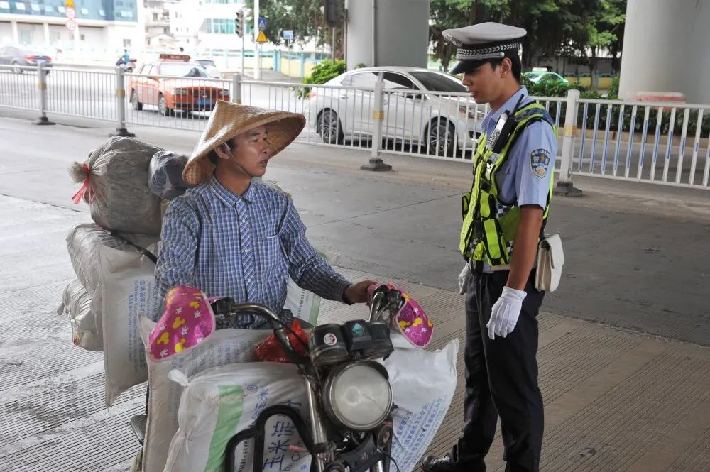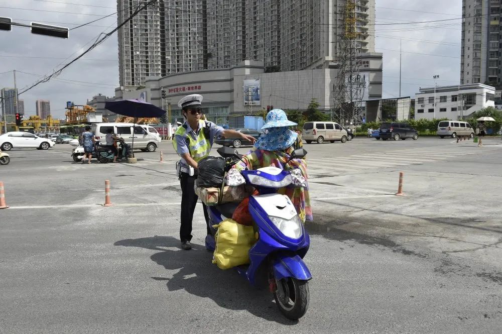 对外来进村的办事人员,骑乘电动自行车未佩戴头盔的,交警予以警告和学习教育后,责令其就近购买或借取头盔佩戴后驶离,确保骑行安全。