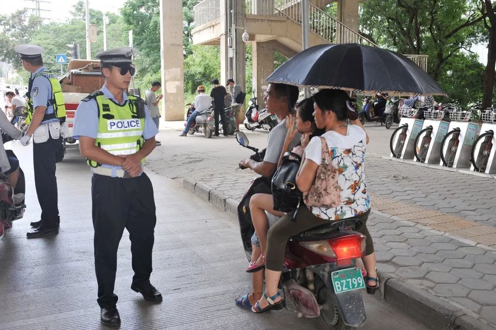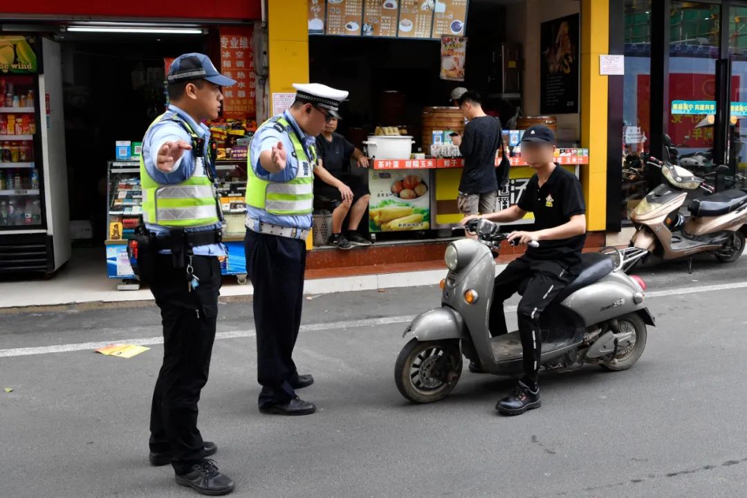 5月13日至14日,南宁交警二大队集中组织警力在葛麻村、长堽村等城中村出入口,设置临时整治点和学习点,对骑乘电动自行车进出村的各类交通违法行为,重点是不佩戴安全头盔的行为,进行现场查纠和学习教育。