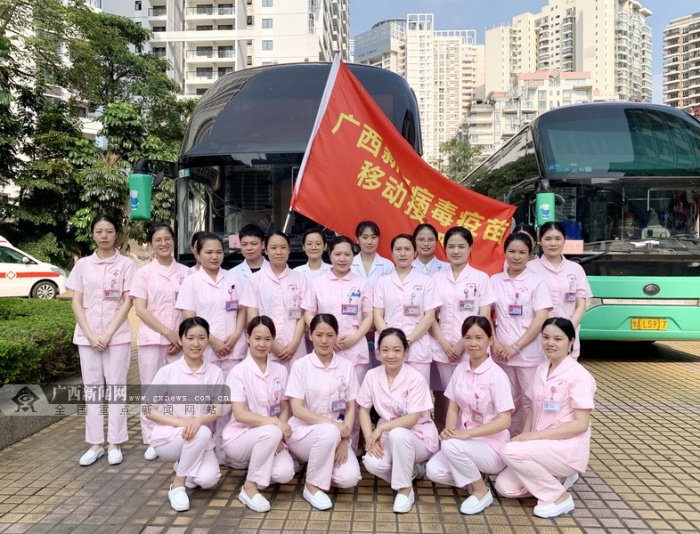 广西新闻网南宁5月17日讯(记者 陶媛)5月17日上午,10辆车身印着“国家免疫规划 智慧移动平台”字样的广西新冠病毒疫苗移动接种车统一发车,开赴各地开展新冠病毒疫苗移动接种工作。